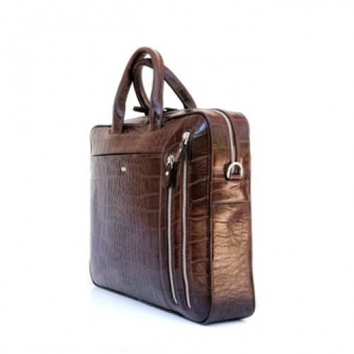 833 Yılka Deri Evrak Çantası Kroko Kahve